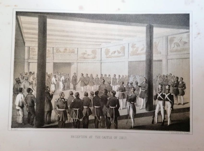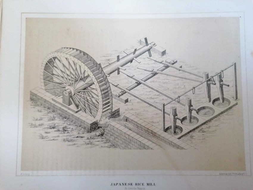 A selection of lithographs, maps and illustration from the 1856 expedition to Japan under the Command of Commodore M C Perry, United States Navy to include: Japanese Rice Mill, Bridge and Causeway at Lew Chew, Reception at the Castle of Shui, Napha from Bamboo Village and approx. 95 others, all unframed, mounted, most with light foxing