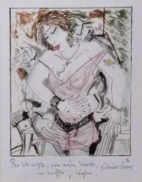 Frederic Pierre (b.1951), UN POISSON AU CREUX DE LA MAIN, dry point and chalk pastel, signed and titled bottom left, dated '89, 46 x 42 cm, framed and mounted, Bohun Gallery label verso and a set of five framed and mounted limited edition etchings of 20/25, all titled and signed in pencil, damage to glass on one (6)