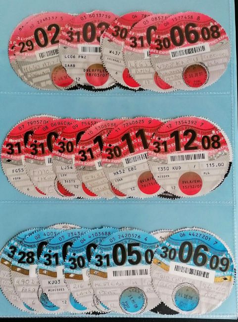 A unique and complete collection of over 5,023 original British vehicle Tax Discs from 1921 to 2015 presented in an album. The album contains one tax disc for every year from 1921 to 1989; one tax disc for each month from 1990 to July 2015, 19 examples complete with selvedge and 22 examples of the final tax disc issued. The remainder of the collection is stored by year groups in 16 storage containers, (see extra photos).