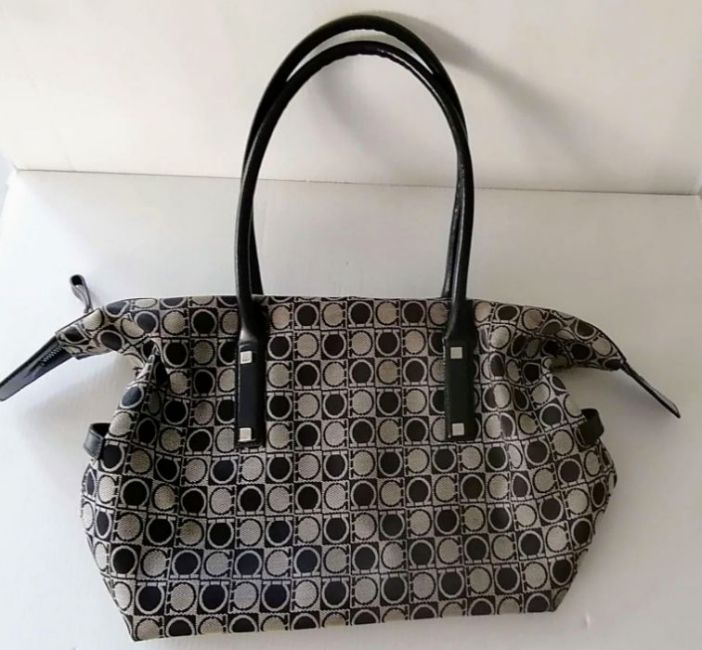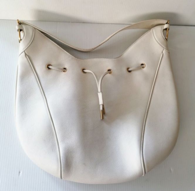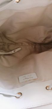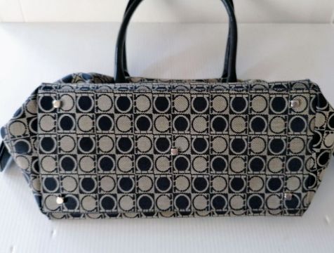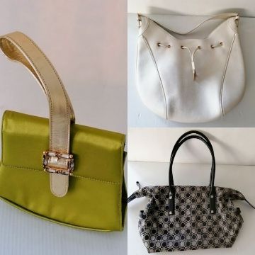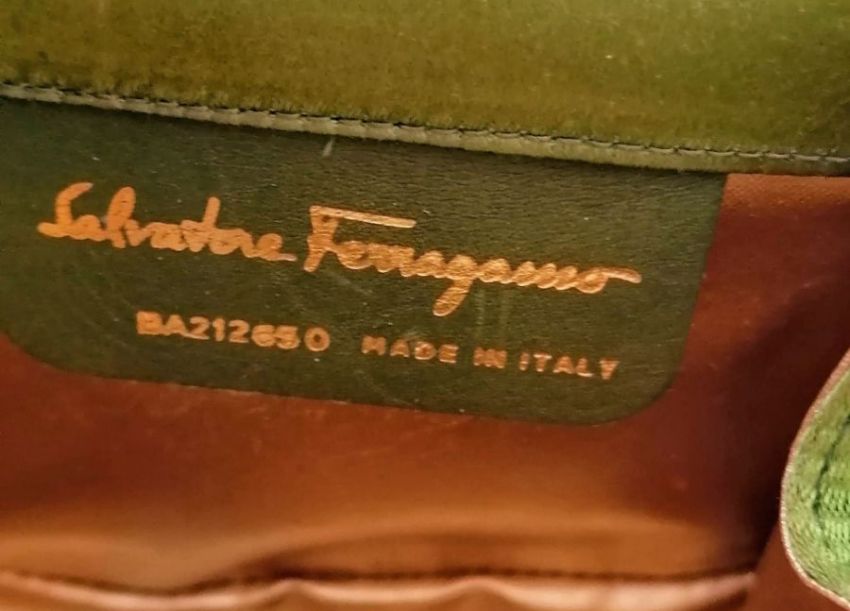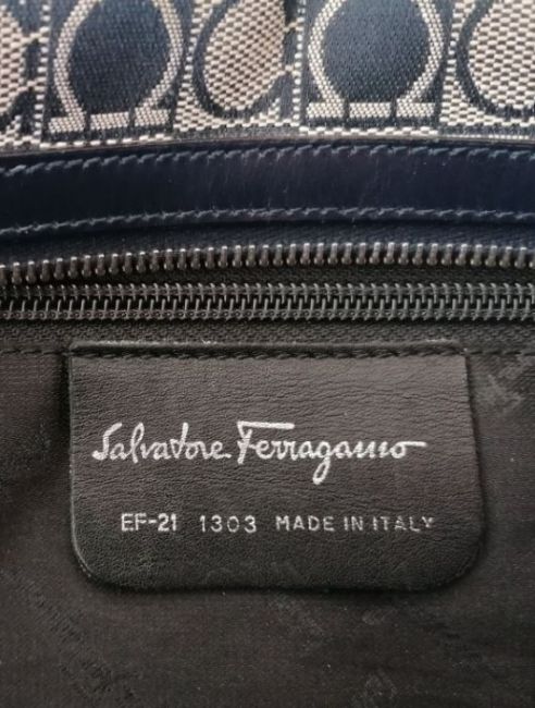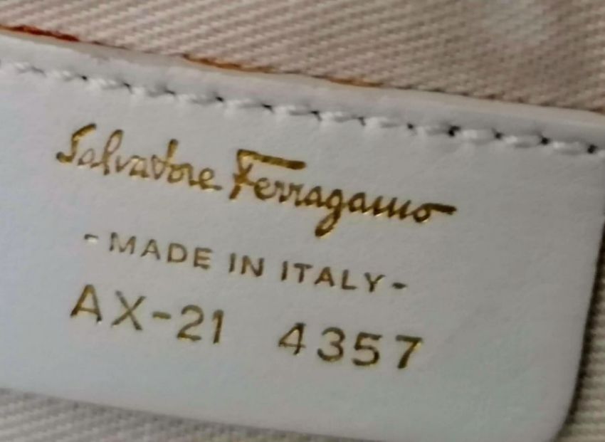 A Salvatore Ferragamo cloth Tote in black/white, EF-21 303, 24 h x 44 w cm; a SF tote white leather AX-21 4357 with gold fittings, 32 h x 36 w cm and a smaller handheld lime green bag, all in good condition (3)
