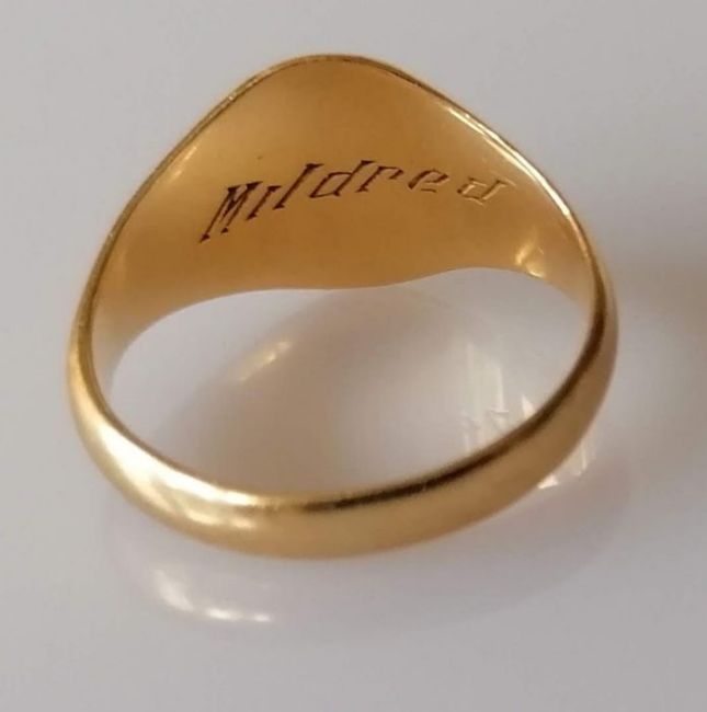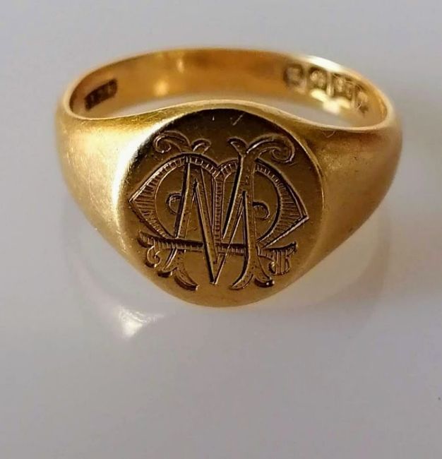 A George V gold signet ring, initialled and inscribed, size R, hallmarked 18ct, 6g