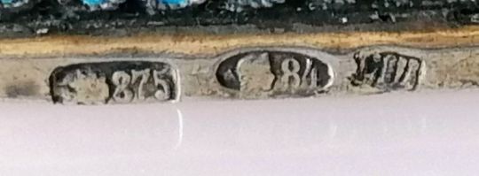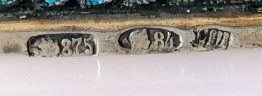 An early 20th century Russian silver .875 (84 Zolotniki) and enamel cloisonné hexagonal napkin ring, Moscow marks, maker CW, 40mm h x 47mm w, in good condition, initialed to inside