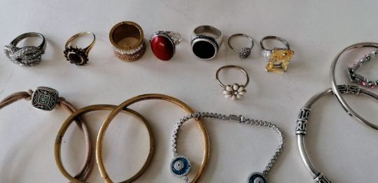 An assortment of mixed costume jewellery, bangles, rings, etc