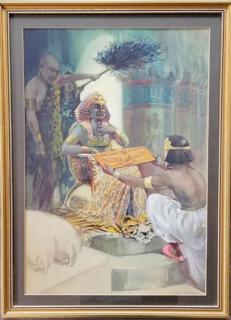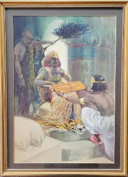 Chas Shiers, SEATED PHAROAH , framed, mounted and signed, 48 x 33 cm